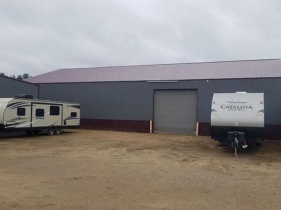 Numerous possibilities with this listing. It includes 3 buildings, the first being a 100x100 steel constructed pole building 14ft high at the eaves and 16ft in the middle. Attached to this is a 30x30 space set up offices and a lobby that requires some finishing. There is a loading dock available to this building that may need a little work. The 2nd is a 64x100x14 wood constructed pole building. Both buildings have a 12x14 and 14x14 overhead door along with a couple service doors. The 3rd building is a 40x40 wood constructed pole barn with a 12x14 door and a service door. 3 phase power is available and all buildings have power. All this sits on approx 6 acres. Current owners utilize the buildings and some ground for camper/boat/vehicle...etc storage space rental. All listing info/measurements are approx.