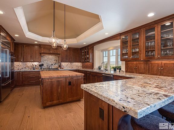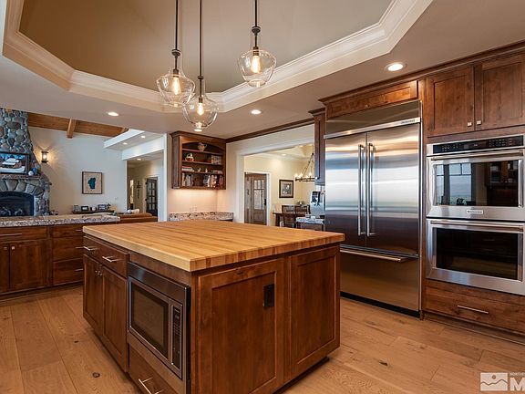 Stunning custom-built residence perched in the coveted Eagle Ridge of Genoa, offering breathtaking, uninterrupted valley vistas. Step into a spacious great room featuring soaring open-beam ceilings and double doors that lead to a private deck showcasing unparalleled views. This home includes 3 bedroom, in addition one to those bedrooms is an addition room perfect for a home office or gym, 3 full bathrooms, and a dedicated laundry room., The expansive master suite boasts a walk-in closet, a luxurious bathroom with dual sinks, a soaking tub, a generous walk-in shower, and direct patio access. The kitchen shines with a large island, double ovens, and a sizable sink framed by a window with sweeping valley views. Upgraded in 2022 with a whole-house water filtration and softener system, this property sits on a sprawling 3-acre lot featuring a newly designed landscape and hardscape area off the back, plus a fresh split rail fence. Experience this meticulously maintained, move-in-ready gem for yourself, with stunning indoor and outdoor perspectives. Conveniently located near shopping, medical facilities, Carson City, Minden, and Lake Tahoe.