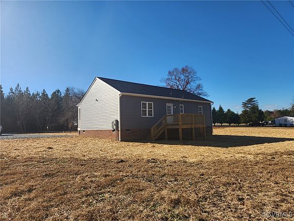 New Home Ready NOW!!! Ready to MOVE IN!!! Quick Close available!! PLUS ASK ABOUT Closing Cost Assistance and incentives from Builder and Lender! Come see this Ready to go New build on 2 acres in King & Queen County. The "Mason" Plan has 1144 sq. ft. features a covered front porch with 3 bedrooms, 2 full baths, open kitchen to the living room with Half Wall perfect for entertaining over your beautiful Granite Countertops. The living room has vaulted ceilings, is open to the Kitchen and has luxury vinyl plank flooring. Plus All rooms have luxury Vinyl Plank flooring. Beautiful Granite countertops top white Kitchen cabinets. Primary Bedroom has full bath with walk-in closet. Utility room opens to the rear 10X12 Deck. Deep well and conventional septic included--No water bill! Tappahannock zip code and minutes from Tappahannock but in King & Queen County. Quick commute to Fredericksburg, Gloucester, Richmond, Mechanicsville or Bowling Green.