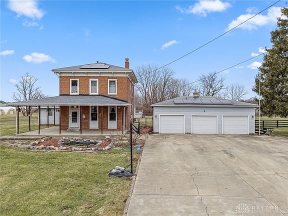 Welcome to this charming farmhouse situated on 1.15 acres. This spacious home offers over 2,600 SQ ft of living space and features a living room, large formal dining room, a beautifully done kitchen, a main floor study/office (could be used as a 5th bedroom if needed), four bedrooms, and two full bathrooms. The large primary bedroom is conveniently located on the main floor for added privacy and has a walk in closet and a full bathroom. Upstairs also has a closet/storage room and the downstairs also features a large utility/mudroom that leads to your outdoor space. Enjoy the outdoors and entertaining on the large covered back patio and/or from the covered front porch that hugs the front and left side of the home. Other outdoor features include a fenced in backyard, a 3-car detached garage, an above ground pool with a deck, a large concrete driveway with plenty of parking space and an extension to the right of the garage, and a storage shed/chicken coop. Updates include but are not limited to New roof on house 2025, Solar panels, vinyl plank flooring in common areas on main floor. This property combines comfort and country living making it the perfect place to call home!