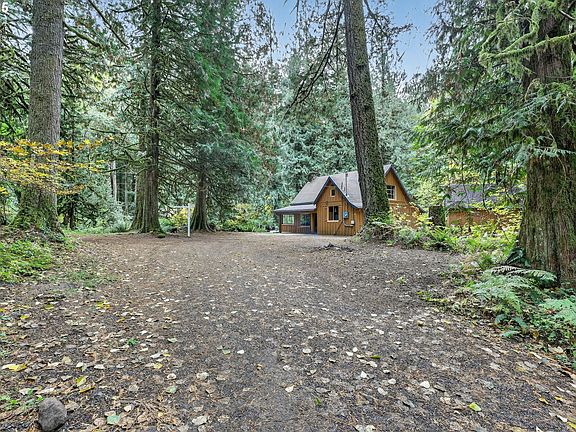 Tucked away at the end of a quiet lane in Mount Hood Woodland Park, this cozy cabin offers the ideal blend of comfort, rustic character, and convenience. Situated on approximately a third of an acre—with an additional smaller vacant lot included (see photo)—you’ll enjoy extra space and privacy in a beautiful wooded setting. Inside, large exposed beams and vaulted ceilings create a warm, open atmosphere that perfectly complements the natural setting. The spacious living area features a floor to ceiling stone wall surrounding the wood stove, and adjacent dining area. The main level also includes a large bedroom, and a kitchen fully equipped with modern conveniences, including a range, built-in dishwasher, and generous cabinet space. A spacious loft adds extra square footage and provides tranquil views of the surrounding forest. Step outside to a beautiful deck overlooking a seasonal creek—an ideal spot for relaxing after a day of outdoor adventures! Two outbuildings provide extra space for storage, a workshop, or gear. With hiking trails right outside your door and skiing just 15 minutes away, this is a true outdoor lover’s paradise!