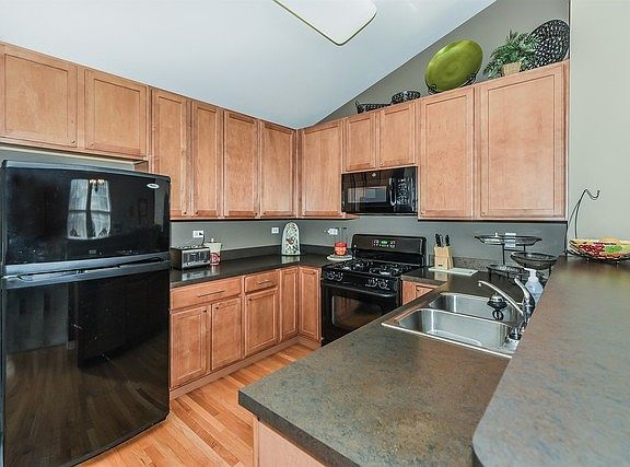 Hurry! Very affordable end unit! Great interior subdivision location! Open floor plan concept! Covered front porch! Cozy living room with tons of natural light! Bright kitchen with vaulted ceilings, extended height custom cabinetry, hardwood flooring and sliding glass door to the private covered deck! Separate eating area with vaulted ceilings! Gracious size master bedroom with private bath with oversized vanity and tile flooring! Spacious lower level with flex/family room, 2nd bedroom and full bath! Full bath on each level great for privacy for guests and each bedroom! Close to walking path, library and all the shopping on Randall Rd! Motivated seller! Bring offer!