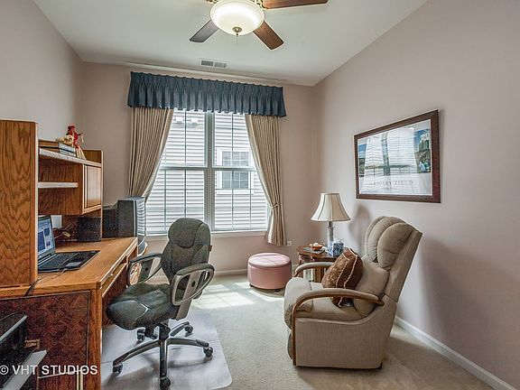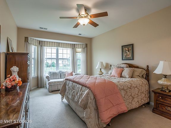 *HIGHEST & BEST CALLED FOR BY 5:00 ON SUNDAY 3/19/2023* Immaculate "Montrose" with Premium location of private easement in back with grasses and wildflowers and trees. Hardwood floors in living room and dining room. Bay window in master bedroom. Patio doubled in size. Elevation C (upgrade). R-19 Insulation in garage ceiling and insulated garage door, gas hook-up on off patio. Upgraded french doors & transom to den. Tile upgrade in hallway and 2nd bath. Beveled formica kitchen counters extra, Upgraded porcelain white sink.Additional cabinets in laundry room, this is a separate room and not adjacent to garage.Newer HWH, and possibly newer washer/dryer and refrigerator. Lot premium to original buyer when built as it backs to extra space between houses with grasses and wild flowers. Lots of space in rear yard between houses! Edgewater by Del Webb is an Active over 55+ community with many activities, be as active as you want to be!No more snow shoveling as Edgewater plows driveways and shovels to front door. at 2". They also take care of grass cutting and fertilizing. Creekside Lodge has indoor pool and hot tub, outdoor pool, fitness center, billiard room, tennis and pickle ball, & bocce courts. Edgewater has a 24/7 guard and is a gated community. Ez to show also! *Please note taxes do not have over 65 Sr. Exemption so with that exemption taxes should be approximately $500 less.