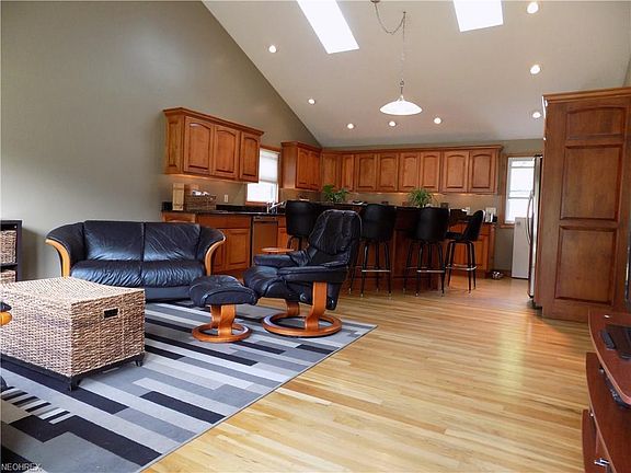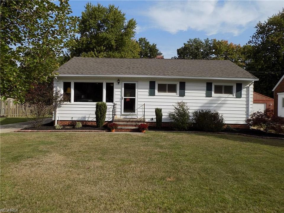 Welcome home! Recently updated Ranch situated on just shy of 1/2 acre. Open floor plan w/gorgeous hardwood floors, vaulted ceilings and sky lights. Living room great for gatherings and opens to impressive kitchen w/stainless steel appliances, granite countertops, double oven and plenty of prep space. Large master bedroom which can be easily converted back into a two bedroom. Additional bedroom located across the hall. 1 1/2 baths w/built in linen closet. Enjoy the four season enclosed porch w/vaulted ceiling and wood beams that offer beautiful views of backyard. Basement includes built in wet bar/sink, game room, separate gym area, work bench and laundry area. Impressive backyard w/patio and detached 2 car garage. Recent 2017 updates include: new roof, new carpet, drywall ceiling in kitchen, fresh paint, recessed lighting and all new paneling on porch. Additional items included: dehumidifier, lawn mower, work bench and extra paint. Make this your dream home today!