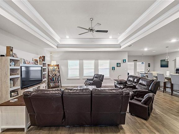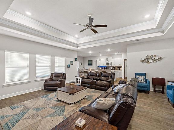 Like new brick home with loads of extras. Tongue and groove porch ceilings, fenced back yard, tray ceilings, chair rail with wood panel molding entry hall and so much more. This open floor plan offers 4 bedrooms and 2 ½ baths with gourmet kitchen, breakfast bar, granite countertops, and stainless appliances. Primary suite also has a tray ceiling, double vanities, separate tub and shower, reclaimed wood accent wall, and spacious walk-in closet with custom built-in wood shelves and drawers. Jubilee Farms inspires a lifestyle where family, community and the great outdoors come together. Enjoy the resort-style pool with a beach entry, 20-foot-tall waterslide, and/or the separate adult pool with bathhouse. Plus, a luxurious resort-style community club house with exercise center, yoga room, fully equipped catering kitchen for community events or private functions and much more. Just minutes from schools, shopping, restaurants, beaches, and I-10. Buyer to verify all information during due diligence.