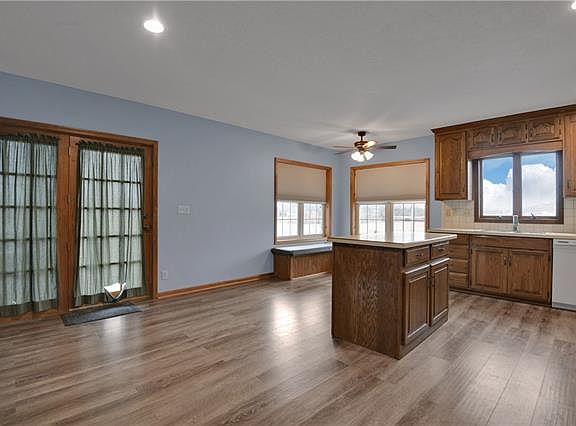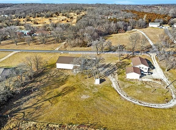 RARE OPPORTUNITY!! A TRUE RANCH HOME ON NEARLY 5 ACRES OF BEAUTIFUL LAND! This home is updated and MOVE-IN ready with a true basement. Property includes a 48x56 Morton building with plumbing, heating, electrical, 14x20 door and 1/2 bath. It is equipped with concrete floor, and a 12x12 covered porch. Property is ready for your animals with 3 fenced acres! Kitchen includes island, pantry and backsplash. HUGE family room. Master bedroom with double closets and private bathroom. Main floor laundry with sink. Large 2.5 car garage. Deck overlooks amazing land. Great location conveniently located between Lawrence and Kansas City. Interior & exterior of the home were remodeled in 2006 w/all new electrical, roofing, windows, vinyl siding & septic. Both high efficiency central air & propane furnace. A wood broiler outside also offers an alternative way to heat the home. THIS WILL NOT LAST LONG!!