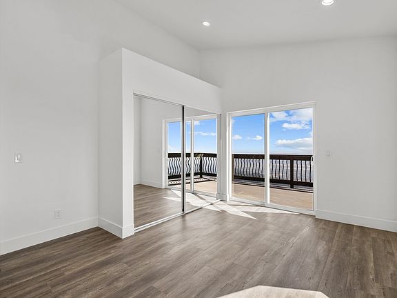 Each bedroom is spacious and thoughtfully designed, including unique architectural elements like distinctive octagon windows. The primary suite includes a private balcony with views that stretch for miles, creating a peaceful retreat.