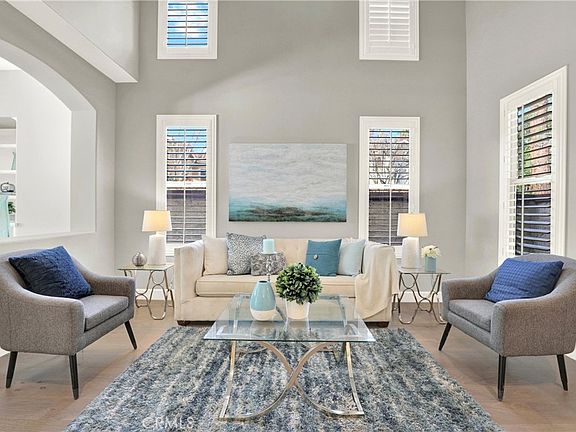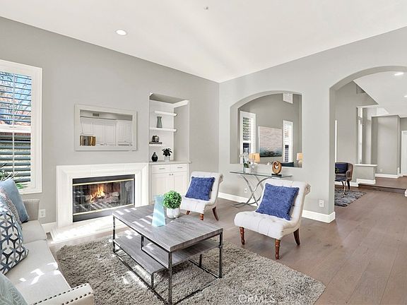 Beautiful Quiet interior end unit within the gated community of Corte Villa. This open-concept design is the largest model in the community. The residence has one bedroom and a full bathroom downstairs. Two secondary rooms a shared bathroom and the Primary Ensuite all located upstairs. All rooms are a generous size. This beautifully upgraded unit boasts natural sunlight throughout. The upgraded kitchen has stainless steel appliances, gas cooktop, quartz countertops, and plenty of storage space. The second floor has a large loft with built-in cabinets and floating shelves that can be used as an office or study area. The unit boasts a separate dining room, living room, and family room with a fireplace. The Primary ensuite has a beautiful fireplace that can be enjoyed as well as a large closet, double showerheads in the Primary bathroom and much much more. Downstairs inside laundry with sink and more storage cabinets. The gated front courtyard area provides added privacy in addition to the beautiful rear patio which is tranquil and beautifully landscaped. Two car attached garage with direct access. Nearby you have the Association amenities which include pools, tennis courts, tot lots, picnic tables and much more. You are also part of the award-winning Tustin school district. Within short distance of Tustin market place and Irvine Spectrum.