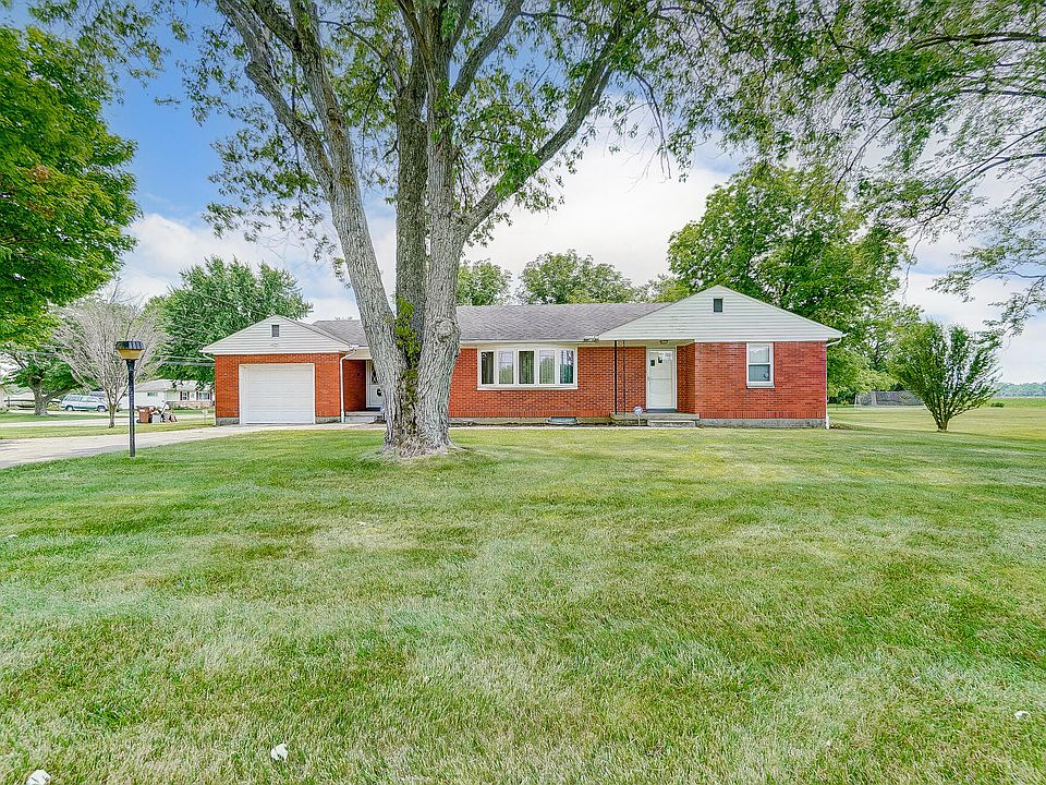 Wonderful, all-brick ranch with full basement setting on 2 parcels totaling over 1 acre of country living! One-owner home with 3 bedrooms, 1.5 baths, deep, full basement! Some wood flooring under carpet esp in bedrooms. Huge living room with bay window and fireplace and open to dining room. Huge kitchen with breakfast area. House has whole house fan. Kitchen and basement are both plumbed for laundry. Attached one-car garage and additional carport. Located on public sewer and water. Furnace 2023, water heater 2023, new electric panel 2008. Immediate occupancy!