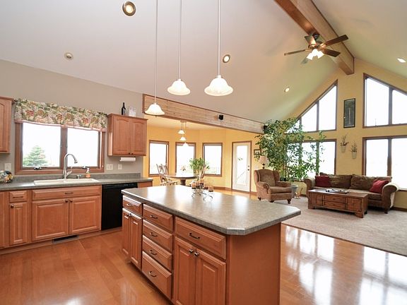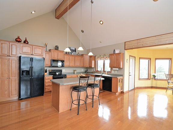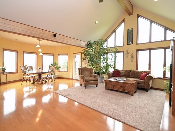Enjoy the peace & quiet on nearly 15 acres, 2582 sq ft ranch surrounded by mature trees with 4 bedrooms + office/flex room, 3 bathrooms, open floor plan, spacious kitchen w/ island, dining room w/ walls of windows, soaring ceilings in living room, 2 master suites...1 on main level & 1 in lower level (lower level suite has whirlpool tub, separate shower & huge walk in closet), huge deck, walk out lower level to patio, main level laundry, 3 CAR GARAGE+ 40'X 50' POLE BARN. Lower level and garage have in-floor heat, extremely well maintained and low Town of Bristol taxes....a must see!