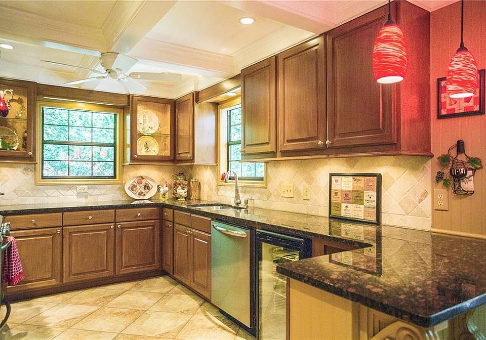 AMAZING Updates/Upgrades for any Price! KITCH w/Granite, Stainless, Tile Floor/Bkspl, Wine Cooler, Coffered Ceiling AND Custom Cabs w/Lighted Glass Doors, Under Lights, Pull Out Shelves. LVRM w/Hrdwd Foyer, Lighted Crown Mldg, Coffered Ceil, Built-Ins, Cozy Fpl. OWNER SUITE w/Dbl Closets, Rec'd Lights, Coffered Ceil AND Htd Tile Floor En Suite w/Custom Cabs, Granite, Pull Out Shelves. Nice 2nd BATH w/Htd Tile Floor. BIG Covered/Composite Deck. Level, TreeLined, Fenced, Prvt Yard. Crown Mldg, Wired HDMI/Direct TV, Dimmers, Fans THRU-OUT. NO HOA. HURRY, Will GO FAST!