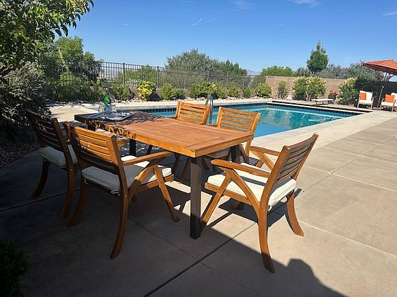 Newly updated, furnished single-family 4 bedroom/ 3 bath home located in the heart of Coral Canyon in Washington. Single level living, just under 2,000 square feet, includes a large backyard, with an oversized heated pool and a completely fenced yard with mountain views. Open and spacious layout with entertainers kitchen. Amenities include a washer/dryer, A/C, and 2 car garage. Coral Canyon HOA amenities include access to a community club with a gym, indoor and outdoor pools, pickle ball, and tennis courts, located just 5 minutes down the road. Quietly located and backs to open space. Pets OK with deposit