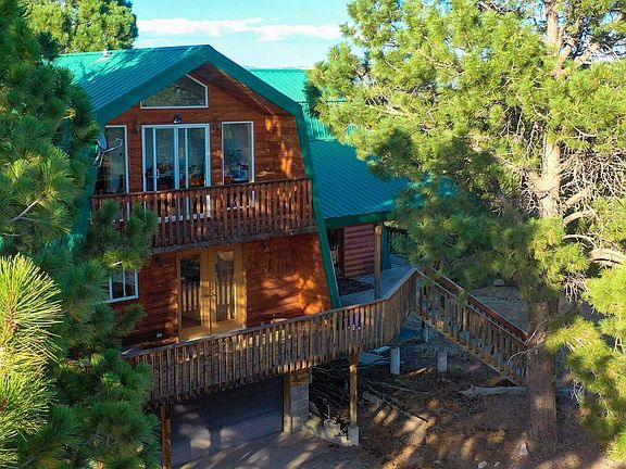 Lovely mountain cabin with beautiful views! Multiple decks. 3 bedroom 3 bath with garage in basement and an additional partially finished 3000 sq ft detached garage/workshop with living quarters. Cabin has a 10,000 gallon water tank and water shares in a community well.
