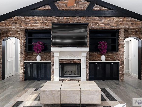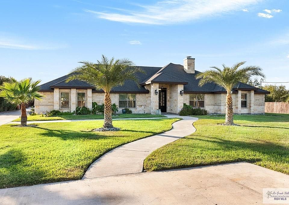 Beautiful 4 bedroom, 2.5 bath home on over 1 acre in Harlingen now for sale! This spacious property features an open-concept layout with vaulted ceilings, exposed beams, a large living area with a decorative stone accent wall, and a modern kitchen with a huge island, custom cabinetry, and stainless steel appliances. The home also includes an additional flex living area perfect for a den, movie room, gym, or playroom, plus a separate office with built-ins. Outside, enjoy a large covered pavilion with stone accents, a barn, and an RV carport. With an automatic gate, driveway, mature landscaping, and plenty of space for hobbies or equipment, this property offers the ideal blend of comfort, privacy, and functionality.