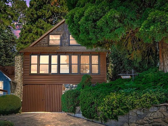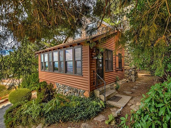 Meander up a country lane with amazing views to the left, and there you will find a charming piece of history ...a 1933 cabin that has survived the generations. It is situated on a quiet street and the 3 extra lots across the street were purchased to guarantee the view will be there for a long time! It has a Oh my gosh view both day but especially night. The home has been beautifully preserved with some modern amenities added but the continuity of the original cabin maintained. The kitchen has a 50 year old O' Keefe & Merritt stove, sitting on the original linoleum floor. The main room is open with all original pine floor and knotty pine ceiling, the native rock fireplace to warm you on a cold winter night. Walk into the sun room, yes and the Oh my gosh view will invite you to sit with a good book. Upstairs are the cozy bedrooms and one could be an office. The 2 car garage with a loft area for storage is sitting on it's own parcel detached from the house. Come experience soon!