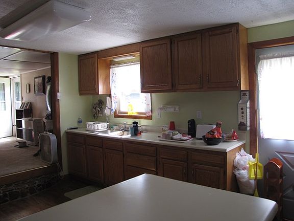 Well cared for 2 bedroom home with large living room and step down kitchen and dining room. Home did have a 2nd bathroom which commode and tub were taken out to enlarge the laundry room but could be converted back. New carpet, monitor heater, covered front porch, out building, fenced garden spot and privacy from the road. Great starter home or one that offers all 1 level.