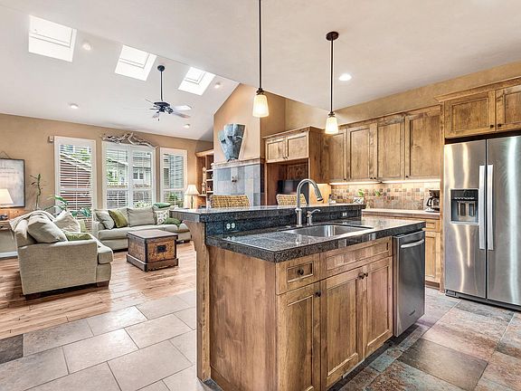 - Interior Features: Breakfast Bar, Master Downstairs, Pantry, Shower/Tub Combo, Tile Counters, Double Vanity, Ceiling Fan(s), Central Vacuum, Enclosed Toilet(s), Tile Shower, Vaulted Ceiling(s), Granite Counters, Open Floorplan, Built-in Features