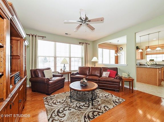 Beautiful "Montrose" model on Premium Lot with HARDWOOD FLOORS THRUOUT! New Driveway '14* Buried Downspout in'15 * Glass Doors & Transom on Den*Extended Patio and Pergola* Beautiful flower gardens in the Summer* Extra green space between houses* 4 Fans* New Hot Water Heater* Upgraded storm door* Ceramic tile floors in bathrooms and walk-in closet*Upgraded tub glass door in 2nd bath*Crown molding in foyer and master bedroom*Southern Exposure to rear of home with plantings and trees*Edgewater by Del Webb takes care of Snow Plowing, Lawn Maintenance, and Lodge has indoor and outdoor pool and hot tub, Fitness Center, Pool Table, Craft room, library and computer room, and many clubs and activities are available!
