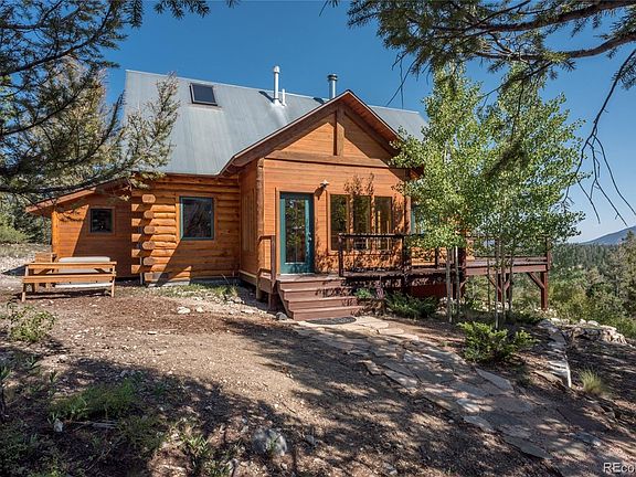 Incredible furnished Log Cabin Mountain retreat with 20.3 acres adjacent to National Forest near Buena Vista. Beautifully maintained with 3 BR and 2 Baths and 1,280 sq. ft. Wrap-around deck to embrace the mountain and forest views (incl Mt. Evans). This is Off-grid living in style with brand new solar package, triple pane windows, newer furnace, and wood-burning stove in great room. Every window provides an incredible view. Conveniently located, 8 miles east of US Highway 24/285 and 16 miles from Buena Vista off CR 185. Two storage sheds and carport for outdoor vehicles. There is a new back-up propane generator included as well. High speed internet service is available and Home has a NEST thermostat (with app on cell phone) which allows you adjust heat prior to your arrival.