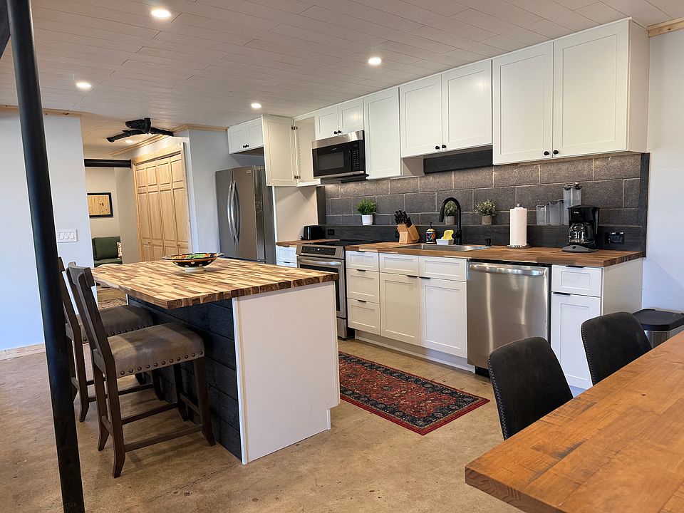 Brand new renovation. Industrial Chic 1 BR walkout apartment with covered patio and large backyard. Private off-street parking for 2 full size vehicles just feet from front door. Top of the line Appliances (stove/oven, full size fridge with freezer, ice and water, dishwasher. Washer/Dryer. Bathroom with full size shower with rain head. Small private nook off kitchen. Lg Bedroom with lg closet. Smart TV (Roku 43" New). Internet provided. Walk to numerous of the best restaurants and Breweries West Asheville has to offer. Not to mention great retail. Parks close by. Located on quiet street in a friendly and safe neighborhood.