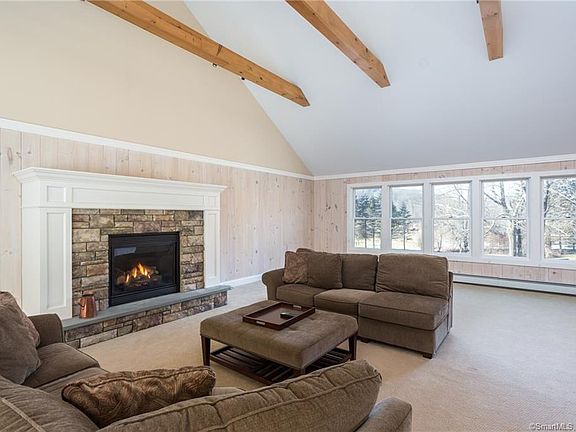 Unassuming Modern home in hidden location near Kent 's center with western views of farmland, a close babbling brook, stunning landscaping and backed by 100 acres of a nature preserve. Inside the Connecticut country side is seen from every window. A 30 x 21 Great room is the highlight of the house with FPL, exposed wood beams, vaulted ceiling. The kitchen is the heart of the house with pantry, wood cabinets, granite counter tops, gas range, and stainless steel appliances, bookcase for cook books. Lovely open family sitting area and dining room just off the kitchen. A study is tucked in between the kitchen and sitting room this is a seamless extension of the open floor plan.Upstairs a master suite with his/ her closets, full bath with jacuzzi. Two other guest bedrooms share a full bath. Sun filled lower level room offers many potential uses- media room, playroom, sun room, studio, etc. With over 3200 sq ft of living space, a two car attached garage, Oak wood floors, french doors, large deck, and truly turn key condition this home is easy to love and live in and is a stand out value price wise!