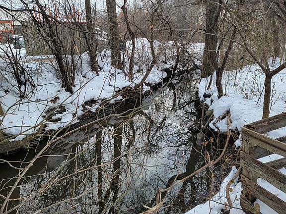 Very unique piece of property with Spring Brook Creek running through the middle of the lot. Small ranch style home that needs extensive work. Close to parks, expressways and shopping.