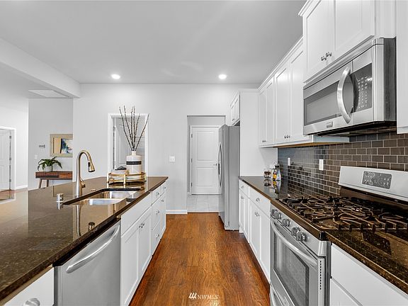 Pristine 2-story Lennar resale in the sought-after Woodland Place community. This gorgeous south-facing detached home showcases a functional, open floorplan w/ top designer finishes: welcoming front porch opens to dramatic entry w/ high ceilings, expansive wood floor throughout, sunlit great room w/ cozy gas fireplace, mudroom, nook, chef’s dream kitchen featuring granite countertops, 5-burner gas range, oversized center island w/ bar seating, SS appliances, & a HUGE walk-in pantry, primary suite w/ walk-in closet & luxurious soaking tub, large bonus room perfect as home office/exercise room/guest room! Play & relax under your covered patio overlooking the fully fenced backyard. Community playground & guest parking a stone throw away.