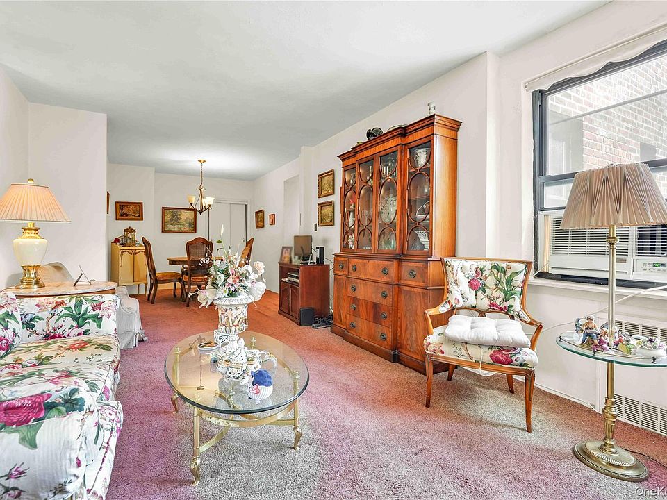 Spacious and bright two-bedroom, one-bathroom co-op on the 4th floor with desirable south and east exposures. This charming corner unit is filled with natural light and offers a functional layout, featuring hardwood floors under the carpet, a formal dining area, and a generously sized living room. The windowed kitchen is perfect for cooking with fresh air and natural light, while the master bedroom offers double closets for ample storage. The second bedroom features two windows, and the bathroom also has a window, plus convenient linen closets. Additional highlights include a coat closet, available parking space, and close proximity to buses, shopping, schools, and transportation.This home has a rich history, having nurtured the upbringing of graduates from Hunter, Johns Hopkins, and MIT. It offers not just a place to live, but a legacy of excellence, character, and pride of ownership.
