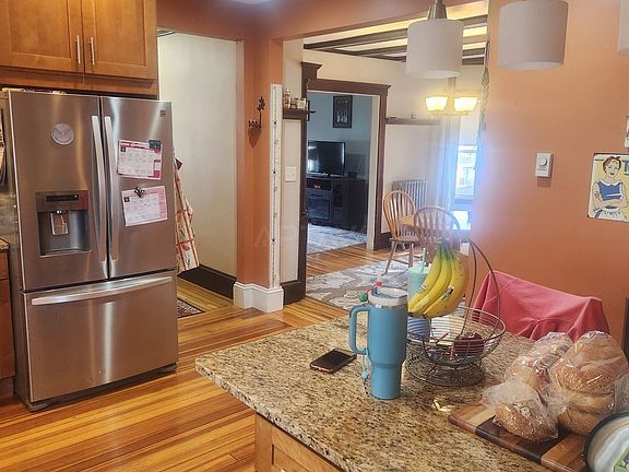 Key features include a dining room, hardwood floors, a living room, a modern bath and a porch. The modern eat-in kitchen has dishwasher, disposal, granite countertops and stainless steel appliances. Rent includes municipal water. Features in-unit laundry. Available on 09/01.