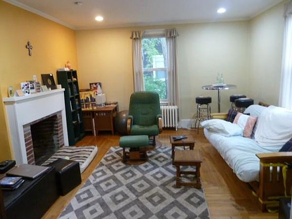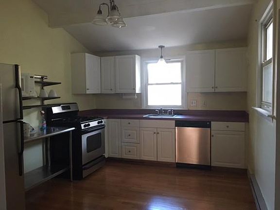 This 3-bedroom townhouse is located right in the heart of Newton Center, a 4 minute walk to the bus and T-stop "Newton Center" Green Line; a short walk to restaurants, park , banks, and stores. It's at the end of a quiet residential dead-end street, has a large yard and drive way parking for 4 cars. The unit was recently renovated and is in a mint ready to move-in condition, with a large kitchen, spacious living room with fireplace, 3 good sized bedrooms, and a study; hardwood floors, high ceilings, many closets and tons of additional storage in the basement and the garage. It is a perfect home for young professionals or students to share, or a family.