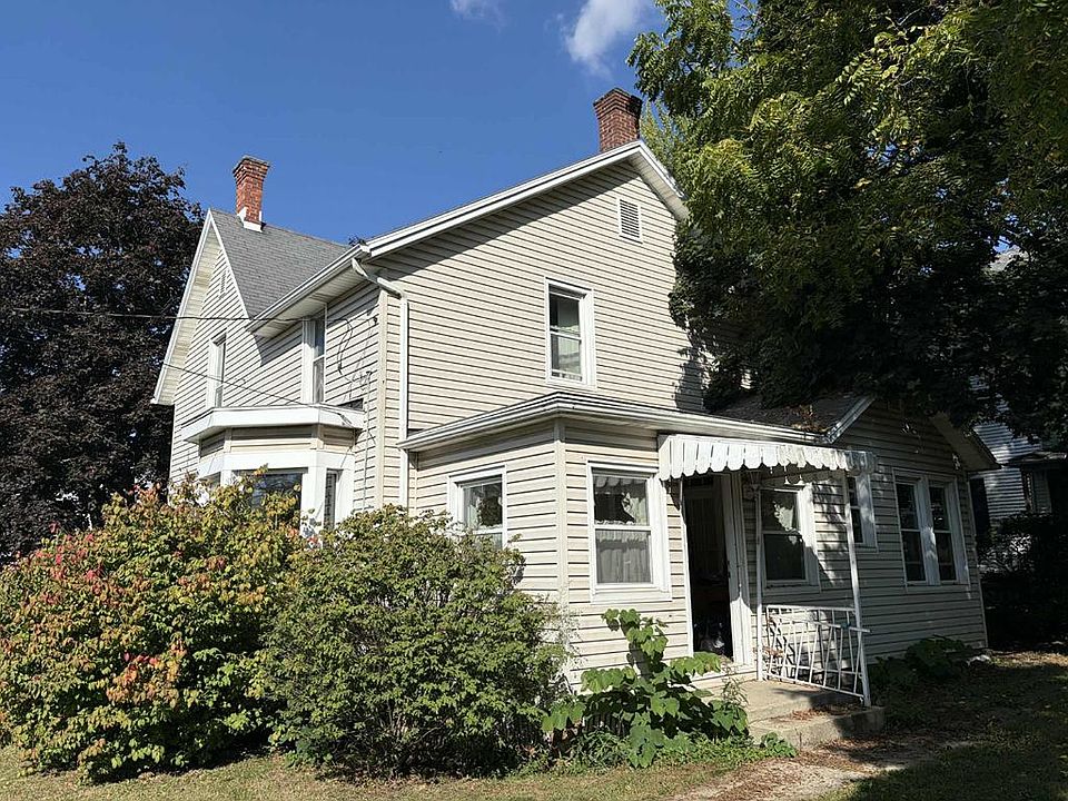 Possible 4 bedroom with 1.5 baths. Mature trees. Convenient location. dble hung low e argon filled windows, 2 bay windows, insulation & vinyl siding, hardwood floor. Lg kit w/breakfast nook. Lg full bath 2nd level. 1/2 bath off kitchen. Sun porch w/double door open to dining room 1 Car det. garage. Corner lot. Sun Porch 13.2x11.10, priced to sell.
