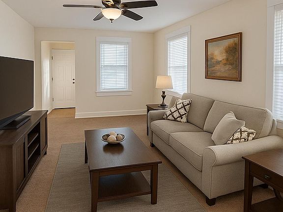 Totally redone two bedroom, one bath ranch home that features brand new kitchen with granite countertops, breakfast bar, shaker style cabinets, ceramic tile backsplash and new stainless steel appliances, dishwasher, disposal, stove, refrigerator and microwave. There are new Lifetime floors and recessed lighting. Living room/Dining room has new wall to wall carpet with fresh paint. The bedrooms feature new wall to wall carpets, fresh paint and ceiling fans. Other features include a new high efficiency gas hot water heater, Brand new central air and newer gas heat. There are vinyl replacement windows throughout, six panel doors, two year new roof and a covered patio. The home is aluminum sided with a freshly coated driveway, there is a shed, a basement and custom landscaping. Priced for a quick sale. This is an "AS IS" sale, inspections for informational purposes only. The seller will provide a certificate of occupancy and a one year home warranty. (AI staging used for some photos)