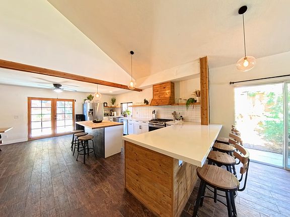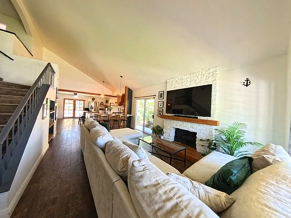 Step inside to find an open-concept living area with abundant natural light, vaulted ceilings, and a cozy fireplace. The kitchen features modern appliances, ample counter space, and direct access to the private backyardideal for entertaining or relaxing outdoors.