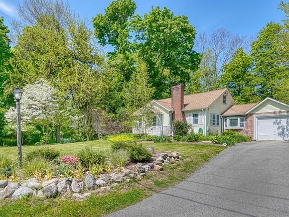 Quintissential Cape that is artfully spread over 3 levels, every corner of this sanctuary has been utilized! This light and airy home will calm you inside and out with it's lush garden bursting with blooms. Living room is highlighted with a wood burning fireplace and plenty of windows for natural light. The 2 yr old kitchen has granite countertops and SS appliances with a step down dining area. Plenty of cabinet space! Both bedrooms are on the 1st floor and a young bathroom with "spa like" glass enclosed stand up shower. On the 2nd floor there are 2 rooms each having a skylight.... perhaps a heated guest room and unheated office? The choice is yours. Downstairs is a legal in law apartment with kitchen , full bath, living area with a glass slider to a stone grotto. Off the kitchen is a rear deck that is covered by a pergola dripping with wisteria blooms. Further into the yard is a storage shed and firepit area for entertaining.