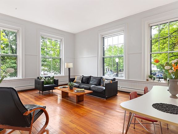 Loft style 2-bed, 1 bath condominium in the coveted Carr Schoolhouse built in 1898 in Spring Hill historic district. Twelve-foot ceilings, enormous windows, amazing natural light, original blackboards and wainscoting, in-unit laundry, 1 deeded parking, and assigned storage. Close to public transportation (.8 mile to Porter Square Redline and Commuter Rail), .9 mile to Harvard Square T, and 12 minutes to Boston. Ideally situated on quiet tree-lined street and conveniently located to Harvard, Porter, Davis, Union, and Inman Squares. Convenient to the many shops, restaurants, markets, and eateries. You're right around the corner from Forge Cafe, Josephine's at The Cambria, The Training Room, Porter Square Books, and Bow Marketplace. Surrounded by greenery, but living in the city, this is urban living at its best.