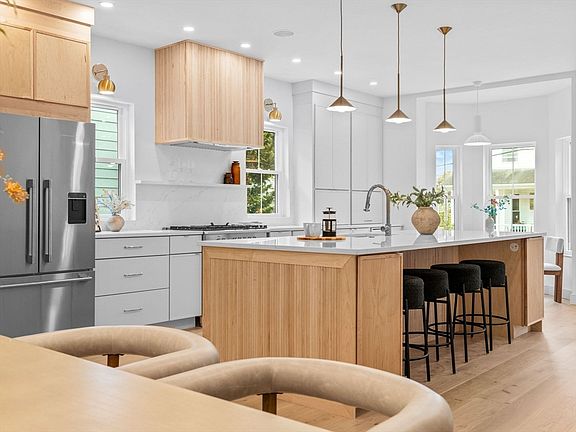 This Modern Classic home in Somerville’s most beloved neighborhood brings together thoughtful architecture and refined finishes that flow seamlessly with everyday living. The entry opens to a light-filled kitchen where wide-plank oak floors and custom millwork set a warm tone. The kitchen is crafted for both function and elegance, with a large pantry, wood fluted accents, and a sizable island. The first-floor plan creates flexibility between the living, dining, and kitchen spaces. The intentional layout of the five bedrooms fits anyone's lifestyle! The owner's suite has large closets and a premium, spa-like bathroom with a full-sized laundry room down the hall. The top floor is the perfect setup for an office and a bonus living room with its own tremendous-sized roof deck. The property has a long driveway that leads to a stone patio and landscaped yard. Close to Union Square’s restaurants, cafes, and parks, this residence pairs urban vibrancy with the quiet refuge of Spring Hill.