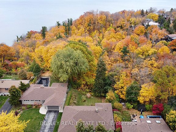 Welcome To 25 Ayre Point Road! A Rare Opportunity In One Of The Most Coveted Enclaves Of The Bluffs. Tucked Away On A Private, Tree-Lined Cul-De-Sac, This Beautifully Maintained 3+1 Bedroom, 3-Bathroom Home Sits On An Extraordinary 70 x 492 Ft South-Facing Lot backing directly Onto The Bluffs and set far back from the street front with Just Under 4000sqft Of Living Space Including The Lower level. Step Into Your Backyard Oasis Completely Secluded And Surrounded By Nature- Featuring An In-Ground Pool, Mature Trees, And Your Own Private Gated Access To The Ravine With Exceptional Lake Views. The Ravine Leads Directly To Cudia Park And A Network Of Scenic Trails, Offering Endless Opportunities For Adventure, Wildlife Sightings, And Hikes In The Forest. Lovingly Cared For By The Same Family For Over 46 Years, This Home Offers A Spacious And Functional Layout. The Main Floor Features Large Windows, Framing Stunning Views Of The Ravine And Lake, Filling The Home With Natural Light And Year-Round Beauty. The Renovated Kitchen Is Combined With A Sunroom Extension, Offering A Front-Row Seat To The Changing Seasons- The True Focal Point Of This Home. Cozy Up, Entertain Or Relax In The Open Concept Living And Dining Areas Featuring Hardwood Flooring, Fireplace And Charm! Upstairs You'll Find Three Generous Bedrooms, Picture Windows -All With Ample Storage. The Sizeable Lower Level Features Full Ceiling Height, A Second Kitchen, Fireplace, 4th Bedroom With 3 Piece Bathroom, Den and coveted Walk-Out To The Backyard. An Ideal set up For Added Living Space, Family And Guests. Located In A Warm And Welcoming Community Where Children Still Play Outside, Neighbours Become Friends, And A Close-Knit Community Feel Thrives Just Minutes From The City. Walk To Top-Rated Schools, Shops, Restaurants, And Some Of The Best Trails In The City .The GO Train Is Just Minutes Away, With Downtown Only 20 Minutes.Don't Miss Your Opportunity To Call This Spectacular Property, Home!