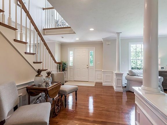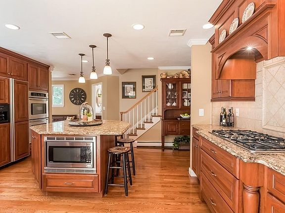 Stunning home nestled on a choice acre+ lot in one of Hanovers most sought after neighborhoods, Homestead. Enjoy the private lot on cul-de-sac with professional landscaping. Soaring ceilings & beautiful front entry spilling into warm & inviting family room. Kitchen forms the heart of the home with huge center island for gathering, extensive storage, double ovens, 13 x 11 dining area, custom cabinets, second stairway to bedrooms. Elegant hardwoods in living & dining rooms. 1st floor office. Luxurious master suite featuring 12x11 dressing room, walk in closet, en suite bath with steam shower. Back yard designed with entertainment in mind with grand stone fireplace, outdoor bar & even a campfire site! Beautifully finished walk out great room in lower level with impressive bar area equipped with refrigerator & dishwasher, office (great alternative as a bedroom), full bath & exercise room. Huge in-law / au pair potential, 5 bedroom septic. Ready for fun-filled new owners to enjoy.