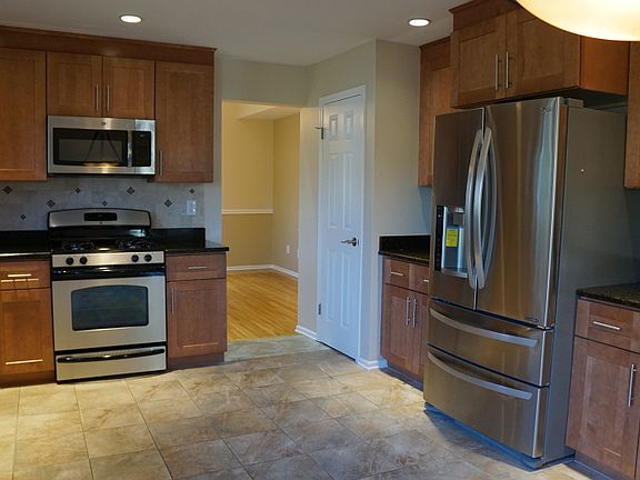 Largest model St Andrews -end unit. Great location. Recently updated and painted. Newer Kitchen cabinets, granite counters, SS appliances. Fireplace in family room. Wood floors and main level. Finished basement & laundry room. The community offers an outdoor pool during the summer, playground, tennis courts and club house which can be rented out for parties. Community is located by NYC transportation and easy access to highways. Tenant responsible for first $100 of repairs and must have proof of tenant insurance prior to move in