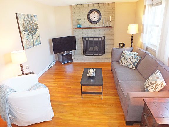 Welcome to this beautiful, updated cape with three bedrooms, two full baths, a picture perfect place to begin your home ownership! This homes features an updated eat-in kitchen with granite counters, stainless steel appliances, updated cabinets, tiled back splash open to the family room with sliders to the patio. Formal dining room and living room with fireplace and HW floors, plus first floor bedroom/office and full bath complete the first level. The upstairs includes two generous front-to-back bedrooms including a master with a walk-in closet and an updated full bath with glass enclosed double shower. A full basement with room to expand or to provide lots of storage, plus easy care vinyl siding, thermopane windows, central air, and an oversized detached two car garage complete this beautiful home.