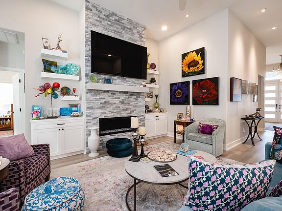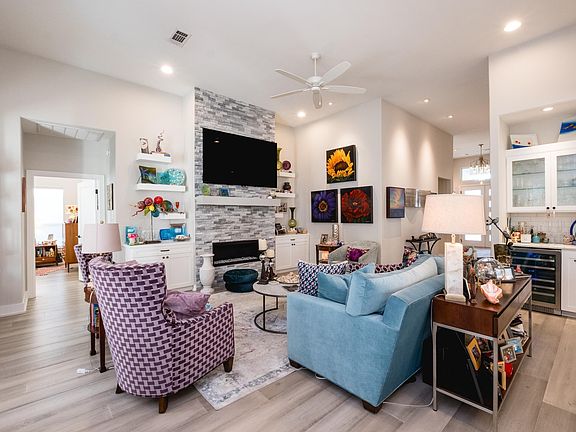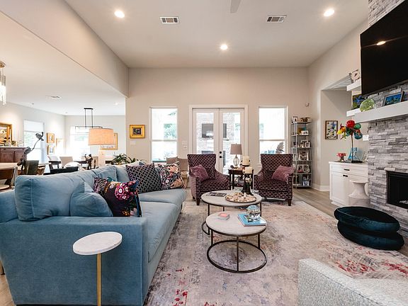 Step inside this custom-built 4-bedroom, 2.5-bath home, where natural light fills every corner of the open living, dining, & kitchen areas. Designed with comfort, function, and style in mind. The primary suite features 2 spacious closets & a spa-inspired ensuite bath with a curbless wheelchair-accessible shower and soaking tub. The secondary bedrooms share a well-appointed pass through bathroom, offering both convenience and privacy. Enjoy year-round outdoor living on the covered patio with a fireplace, overlooking the lushly landscaped, fully fenced backyard that backs to a tranquil green space for added privacy. Every detail reflects thoughtful craftsmanship—from the hydraulic TV mount and custom-selected countertops to the built-ins that elevate the home’s character. Other highlights include a walk-up attic, wide doorways, custom window blinds for light control, and a dedicated space for an additional refrigerator. Located within walking distance of Don Roberts Elem & just minutes from several top-rated public & private schools, this home offers the perfect blend of luxury, livability, & location.