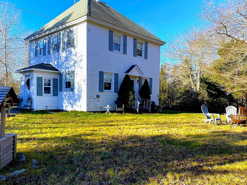 Charming Winter Harbor home with 4 bedrooms on a pleasant 1.0 +/- acre parcel. The private yard with mature trees is the perfect complement to the low key location within the coastal village. This turn-of-century era American Foursquare home has many original features including hardwood floors throughout and a wood-burning fireplace. The sizeable two-story addition provides an in-law suite with a small kitchenette, a spacious great room, a full bath, plus one very generously-sized bedroom. The addition conforms to the American Foursquare building style, and it has hardwood floors throughout as well. Enter the in-law suite via the first floor, the second floor, or directly from outside. Some updating has been done in recent years. This inviting property sits along a quiet side street, while being only 0.4 miles (or less) to: the town wharf, the town boat launch, the grocery store, & several restaurants. Use the entire home as one spacious residence, or modify it to fit your specific needs. If you seek an appealing small coastal town, do not miss out on seeing this lovely home on an amply-sized parcel in Winter Harbor. Enjoy coastal Maine all year long!