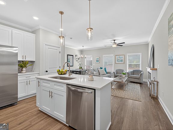 The Willow plan built by Create Homes. Quick Move-In! Enjoy the convenience of prime location close to shopping, dining, Hartsfield-Jackson International Airport, I-285, I-20, I-75 and the East-West Connector. Within walking distance to vibrant downtown Austell, this stunning new residence seamlessly blends contemporary style with functional living, creating a space that elevates your everyday. Enter into the open-concept main level which offers a modern kitchen featuring stylish countertops, stainless steel appliances, a spacious island, and soft-close cabinets and drawers. This space seamlessly flows into the dining and living areas, making it ideal for both everyday living and entertaining. A private rear patio extends your living space, providing a great spot to unwind and enjoy the outdoors. Upstairs you'll find the primary suite offers a spacious retreat with a double vanity, a walk-in closet, and modern hardware and fixtures for a sleek, contemporary feel. The laundry room is conveniently located nearby, and two secondary bedrooms with a full bath completes this floor. Built by Create Homes, this energy-efficient townhome features smart home technology and quality construction. Secondary photos are of the standing Model Home, listing color selections vary. Kitchen and Master Bath are of the actual home.