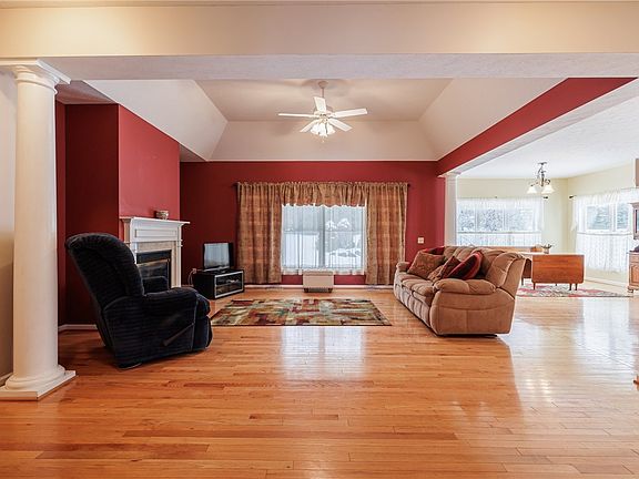 Beautiful RANCH style home with 3 bedrooms, 2 full baths, & 2 car garage. Step inside the spacious foyer overlooking the great room with volume ceilings & gas fireplace. The kitchen has lots of storage, granite counters, walk-in pantry & island. The large dining area overlooks the private backyard and covered porch. Off of the kitchen is the entry from the garage and the 1st floor laundry room. The front bedroom could be used as a home office. Primary bedroom features a walk-in closet and custom tiled shower. The unfinished basement has endless possibilities. There’s also an outside storage shed. HARDWOOD floors throughout. ALL APPLIANCES ARE INCLUDED! UPDATES: Roof (tear off) 2017, Water Heater 2016, Central Air 2019, Furnace 2022, Primary Shower 2023, Garage Overhead Door & Opener 2024, Refrigerator, Washer & Dryer 2021. DELAYED NEGOTATIONS. ALL OFFERS DUE BY MONDAY, 3/10 AT 12 PM.