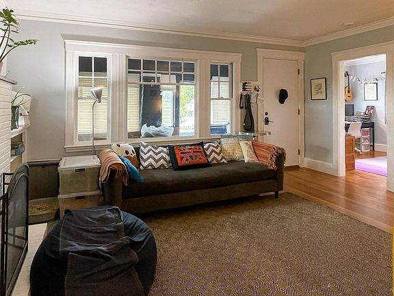 This house is unique. It's situated on a hill in a rocky landscape, with views toward the South and West. Open view to the Boston skyline in the winter. It gets great light, especially in winter when you need it most. In the summer it is quite well shaded by deep eaves and lots of trees. The backyard leads onto several acres of private but undeveloped rocky woodsy land. At the top of the street, you will get to the entrance to the Middlesex Feels reservation, a huge nature reserve with reservoirs and miles of biking and walking trails. It is quiet. There is a small apartment on the lower level with one tenant. There is one immediate house next door with wonderful neighbors. The Orange line (subway) is about a mile away, at Oak Grove or Malden Center. The house has 3 rooms plus a bathroom on the main level. There are 2 window ac units available. The heat is radiant baseboard and is quiet and efficient and works great. Upstairs is a finished attic space, with one space that is used for owners' storage, and another that is set up as a TV/family room. The kitchen is very large and well equipped, with an eating counter. It leads out to a patio in the back, with a nice gas grill. There is a brand new washer dryer in the kitchen area. There is a large enclosed entry porch that is useful as a mudroom/storage space. A basement space with a workbench and utility sink, and limited storage space is available to both units. There is a small garage at street level that is useful for bicycles, trash/recycling, and storage. It is not for parking a car. There is plenty of free street parking at all times. There is a separate one bedroom apartment in the basement, with a separate entrance and private outdoor space. The house is PARTIALLY FURNISHED, and includes one double bed, a dresser, built-in desk, two couches, a rug, dining table and chairs, two bookshelves, and an eating counter with chairs in the kitchen. There are a few artworks on the walls, and a handful of house plants. The photos toward the end of the photos set depict what is included. Tenants are free to rearrange furniture as suits them, but it cannot be removed from the house for the duration of the lease. Some flexibility in lease start day may be able to be arranged - 4/1, 4/15 are possibilities. One year lease, with possibility of extending beyond (but not guaranteed). Tenants responsible for snow removal, keeping grounds tidy. Tenants will reimburse owners monthly for cost of utilities: Gas and electric. Fast fiber internet is included, as well as water.