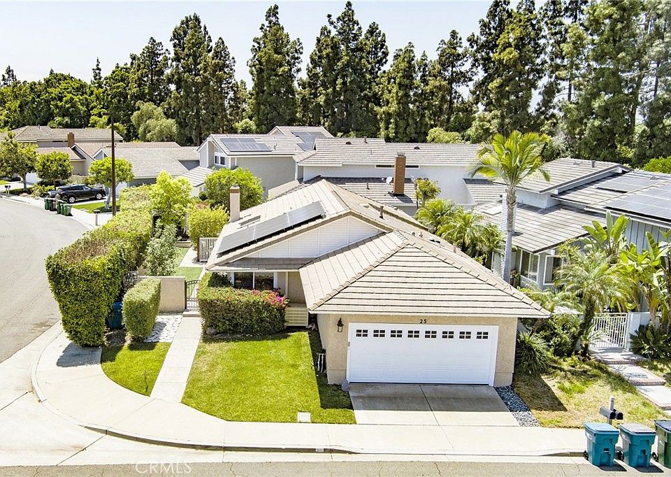 Welcome home to the highly desirable community of Woodbridge in Irvine. Live in a convenient single level home with an open floor plan and spacious backyard. The backyard offers a large patio for entertaining guests, a guava tree, apple tree and additional space for gardening. 25 Bluejay offers 12 paid off solar panels and a Tesla Powerwall to maintain power all year round. The garage has custom cabinets, epoxy floors and a 240V outlet for charging electric vehicles. Other upgrades include new flooring throughout, nest thermostat, recessed lighting and dimmers, newer main electric panel, fresh paint, dedicated AC in master bedroom and newer HVAC and ducts. Enjoy a remodeled kitchen with quartz countertops, stainless steel appliances and a plethora of storage space for all your cooking needs. Stay organized with brand new custom closets in every bedroom, new light filtering cellular shades in the living room and bedrooms and double pane windows throughout the house for additional privacy. Very close proximity to Bluejay Park and award winning neighborhood schools, Stone Creek Elementary, Lakeside Middle School and Woodbridge High School. Woodbridge community also offers access to 2 landmark lakes with docks, 2 beach lagoons, 22 pools, 16 spas, 13 waders, 23 tennis courts, 4 pickleball courts, a splash pad, numerous parks with play equipment, volleyball courts, a big wheel park, horseshoe and shuffleboard facilities, an outdoor fitness course, basketball, volleyball, bocce ball and much, much more!