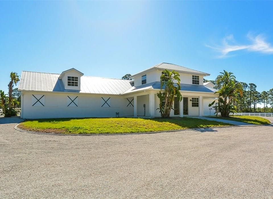This 14 acre property with custom Horse Stable (or Automobile/toy barn) is perfectly situated just minutes from the Boca Grande Causeway. The East side of the property is bordered by a beautiful Conservancy lagoon and the West borders State lands and East Coral Creek which makes this singular property extremely private. The automated security gate guides you to the custom Horse facility equipped with 12 Matted stalls (Four 12 x 15 stalls and Eight 12 x 12 stalls) each with windows and shutters. Six of the stalls access 4 dry lot runs which are adjacent to a large oval Paddock constructed with a Marl base to assure firm footing. All of these facilities overlook and have access to 2 large pastures secured by approximately 4,600 feet of 4 board PVC fencing. Other amenities include; Security system, Electro Braid fencing, no climb woven wire, 6 Nelson automatic water stations, Tack Room and maintenance room with custom metal cabinets. Barn also includes nicely finished living area with a second story apartment with excellent views of the property. Please note that an additional 6 acres is negotiable, survey available on request.