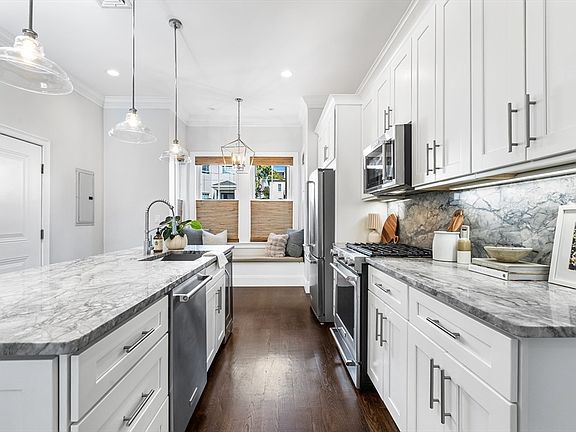 Welcome to this stunning 2 bed, 2 bath condo with a spacious layout and high-end finishes. The chef’s kitchen boasts quartzite counters, stainless steel appliances, a wine fridge, and an oversized island perfect for entertaining. Hardwood floors and high ceilings flow into a bright living room, while a custom breakfast nook framed by bay windows offers the ideal spot for morning coffee. The lower level features a king-sized primary suite, second bedroom, full bath, laundry, and generous storage. Enjoy private outdoor living with both a deck and patio, plus an additional storage area. Ideally located near Assembly Row, Sullivan Square T stop, and major highways—this home is a must-see!