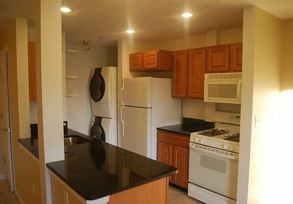 this beautiful condo features 2BR/2 full baths, master bedroom has a walk-in closet, hardwood floors, kitchen has granite counter-tops and opens to living area that has sliding glass door that leads to a balcony, dishwasher, washer and dryer in unit, central heat and A/C, low utility bill as hot water is included in rent and it has newer energy efficient heat system, storage in basement, 1 car assigned carport space included and 2nd spot available to rent