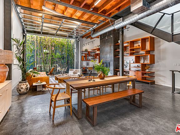 Designed by award-winning architect Steven Ehrlich, this stunning Venice loft effortlessly blends industrial cool with the warmth and tranquility of coastal living. The dramatic open floor plan features soaring exposed wood beam ceilings, polished concrete floors, a rustic metal fireplace, and an expansive wall of open-shelf built-ins. A modern kitchen and dining area flow seamlessly into the spacious living room, which opens to one of three private outdoor spaces through a rolling glass wall, creating the perfect indoor-outdoor vibe. Bathed in natural light, the freshly painted interior exudes warmth and elegance. A steel staircase leads to the en-suite primary bedroom, complete with two oversized walk-in closets and direct access to a private outdoor terrace. This level also includes a second bedroom, a full bathroom, and a versatile office space. The rooftop deck is a show-stopping highlight, offering spectacular ocean views and an ideal setting for entertaining. On the lower level, a laundry room is equipped with a fresh-off-the-beach shower and access to a private secure two-car garage. The boutique building, consisting of only four units, offers guest parking and gated security, providing a sense of privacy and exclusivity. 25 Brooks captures the essence of Venice Beach living, seamlessly blending style, comfort, and coastal charm for the most discerning buyer.